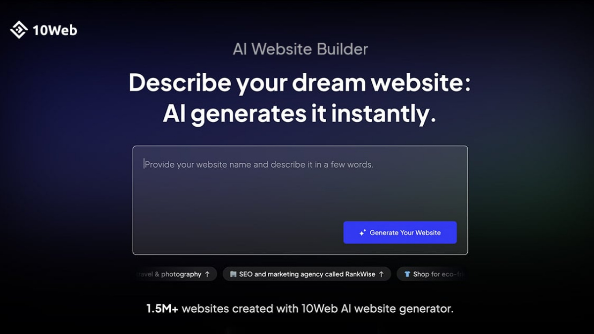 10Web is an AI-powered platform for quickly building, hosting, and managing WordPress websites. It offers AI site creation, managed hosting, automatic speed optimization, real-time backups, one-click migration, and WooCommerce support.