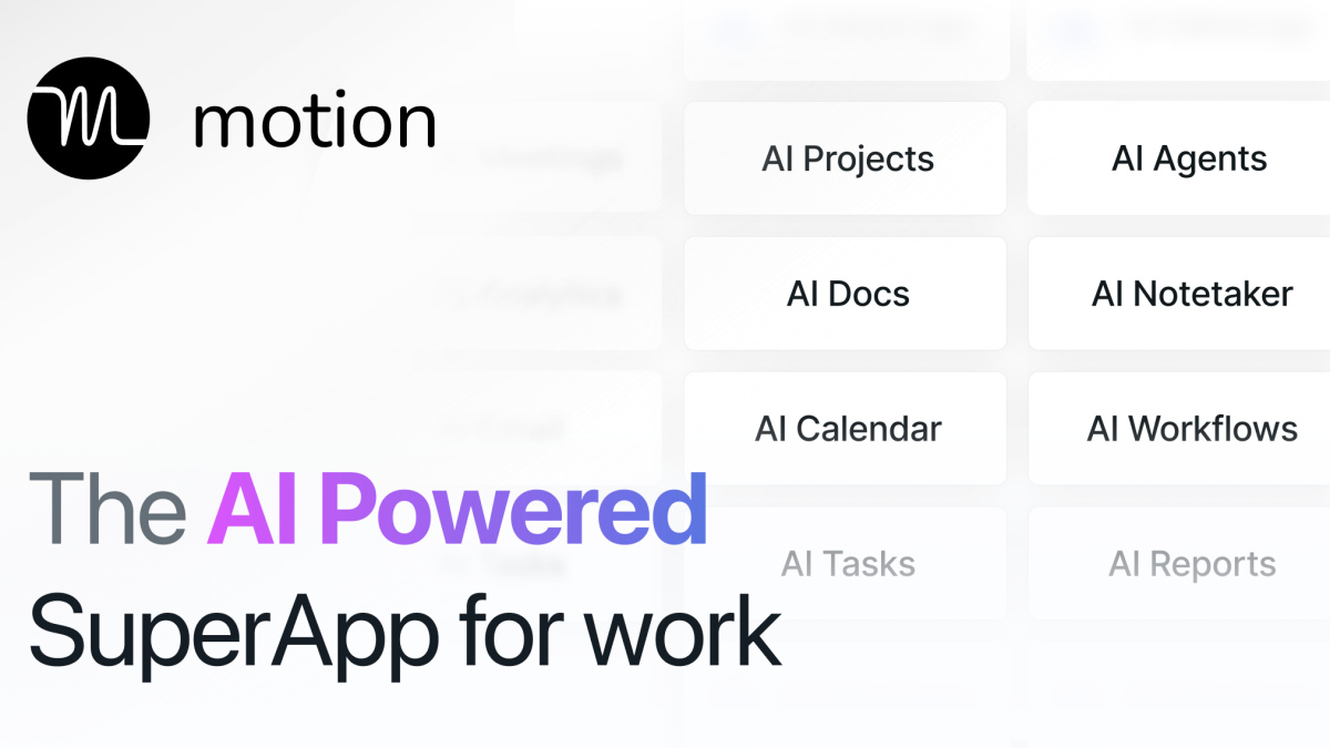 Motion is an AI-powered platform that helps users automate task and calendar management, prioritize work, and boost productivity. With intelligent scheduling, real-time updates, and easy collaboration, Motion makes managing your time and projects effortless.